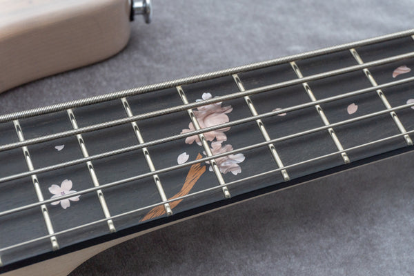 Its appeal lies above all in the luxurious use of Sakura wood, symbolizing Japanese spring, on the body top, and the iconic swallow design on the pickguard.