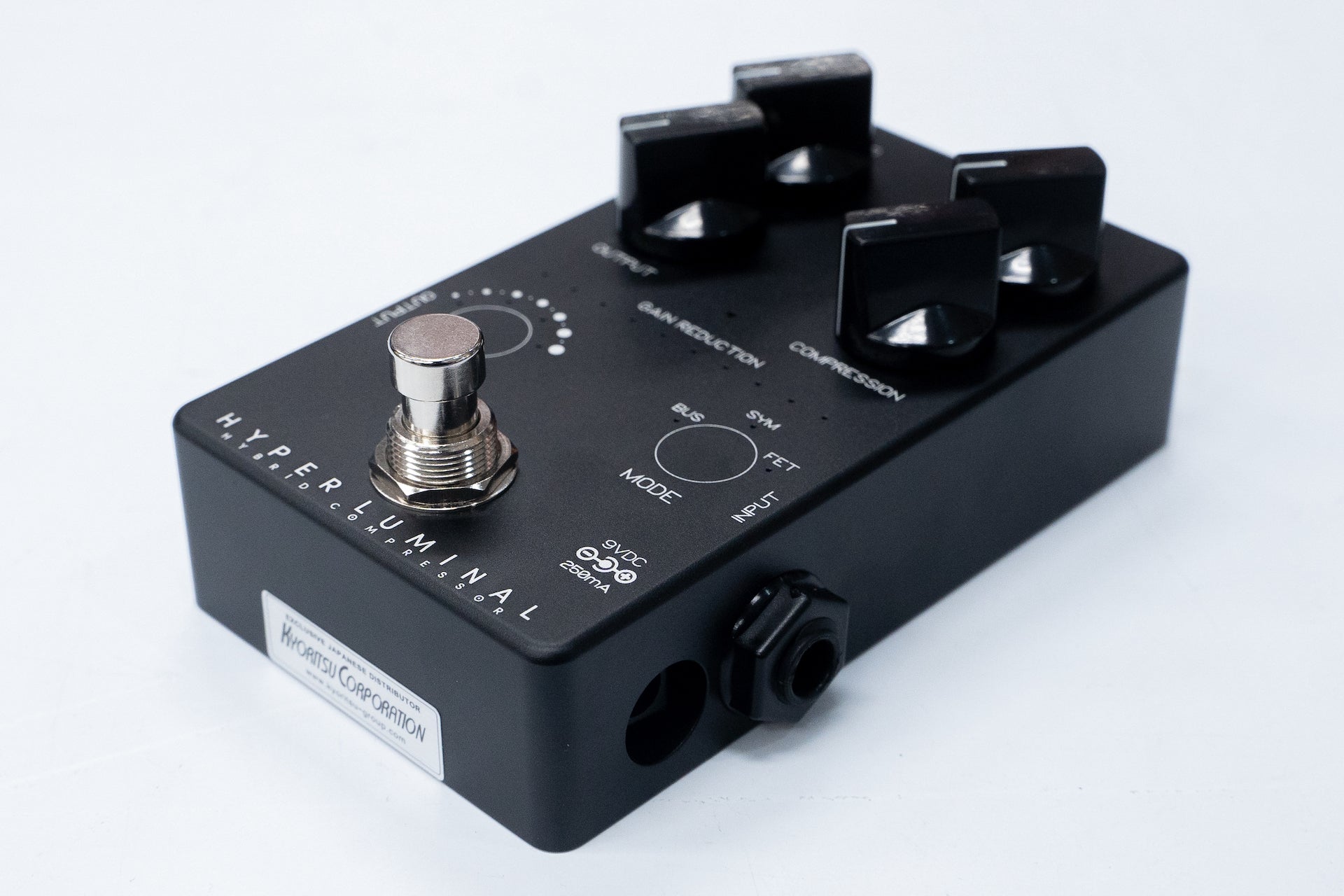 The Hyper Luminal is a compression pedal modeling three legendary compressors in analog form.