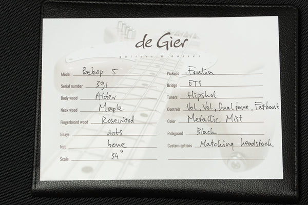 De Gier uses a variety of pickups depending on the guitar, and this one uses Lindy Fralins.