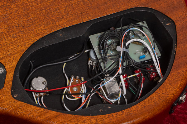 The body top is made of beautifully grained maple, and the back is African mahogany.