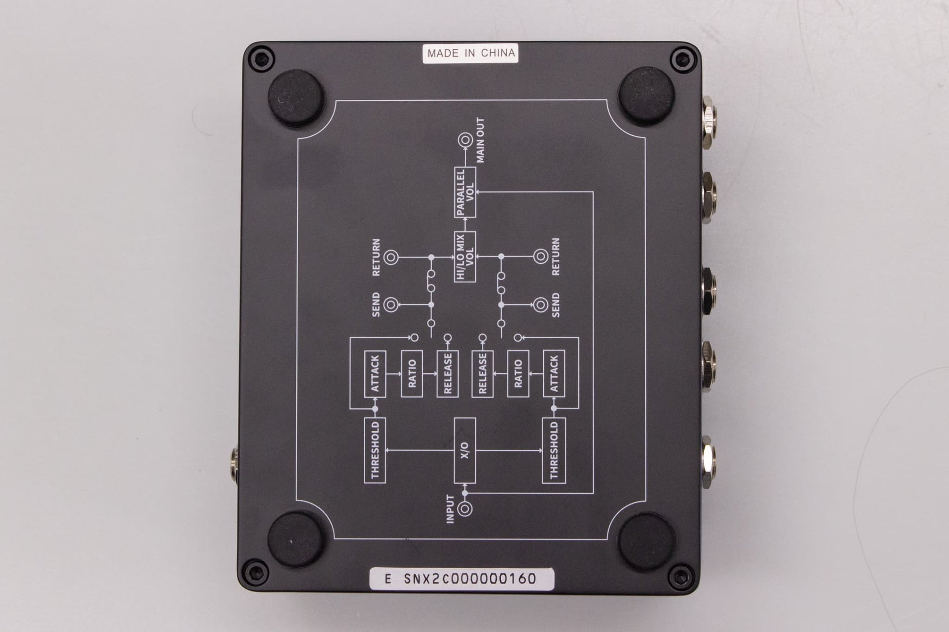 Attack-Release : HIGH Attack (400mS-20mS), Release (30mS-700mS), LO Attack (1000mS-40mS), Release (200mS-2500mS)