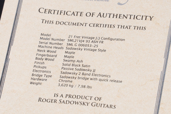 ・Electronics Active Sadowsky 2-Way Electronics + Vintage Tone Control