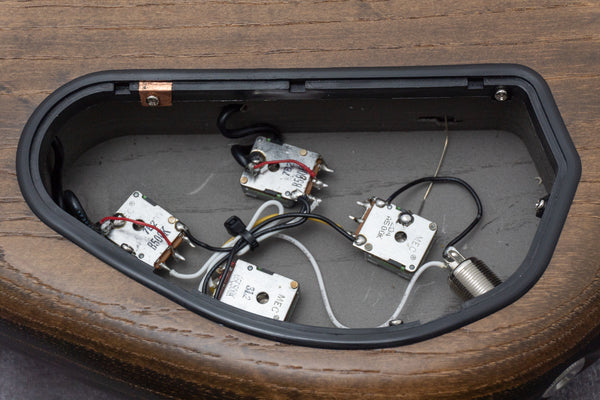• Controls for Volume (neck) / Volume (bridge) / Tone Treble / Tone Bass
