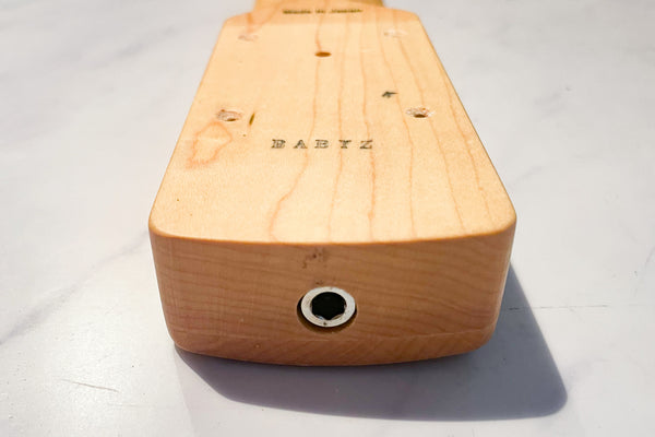 The body is made of ash and the fingerboard is made of maple, a construction typical of the brand.