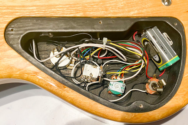 Controls: Neck PU volume, Bridge PU volume (push/pull - active/passive), Treble/Bass