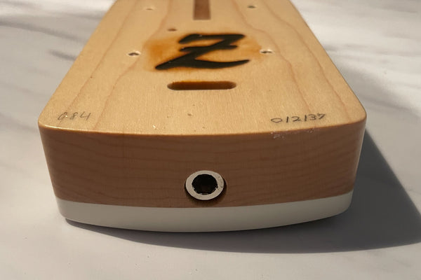The body is made of ash and the fingerboard is maple, a classic brand configuration.