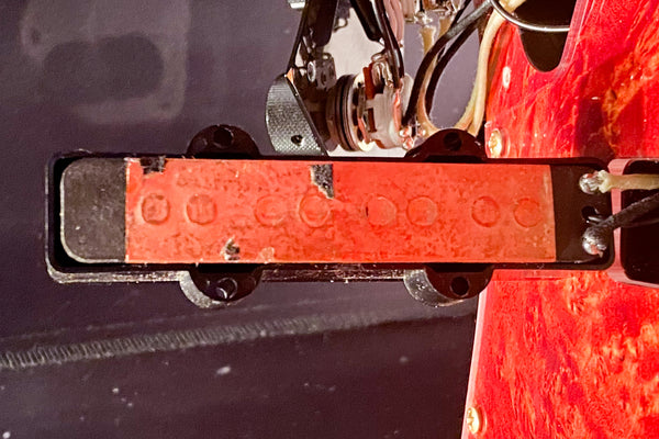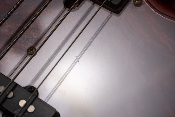 The pickups are original, and the preamp is an Aguilar OBP-2.