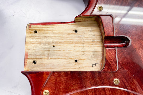 The body top is Burl Maple and the back is Ash.