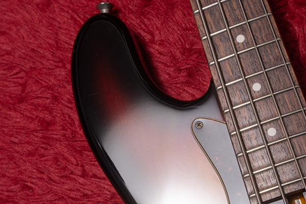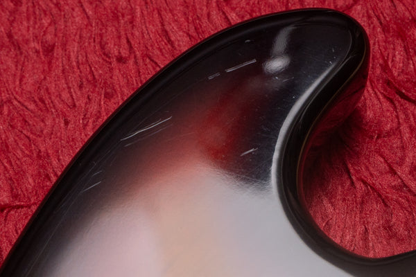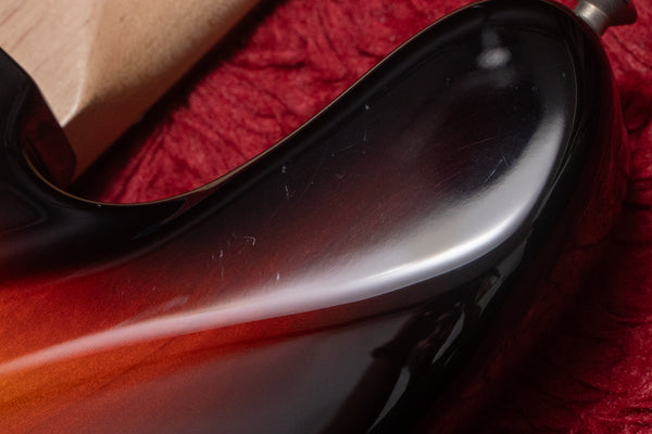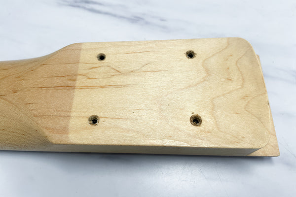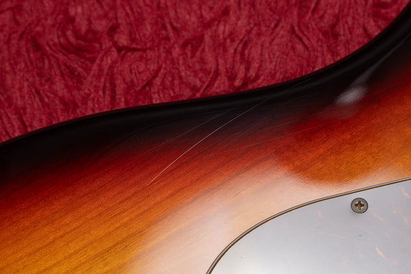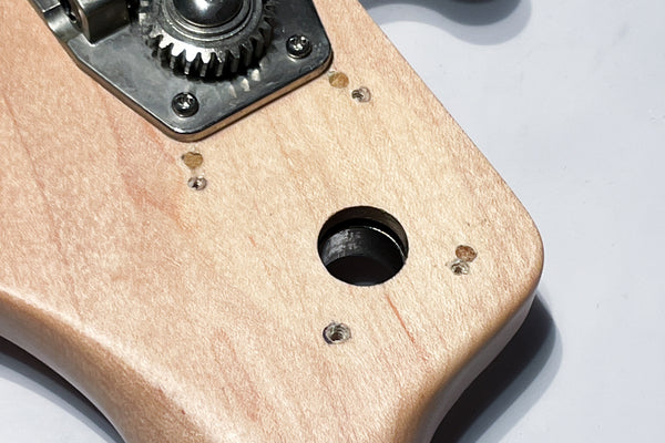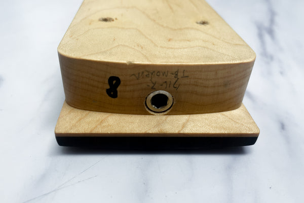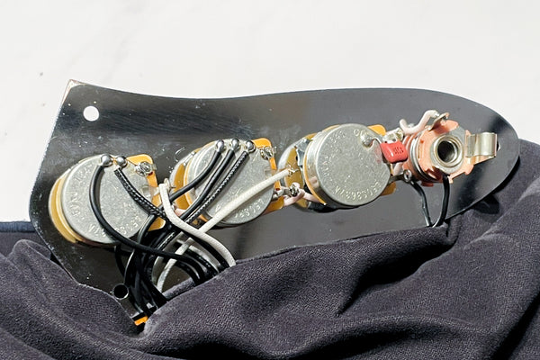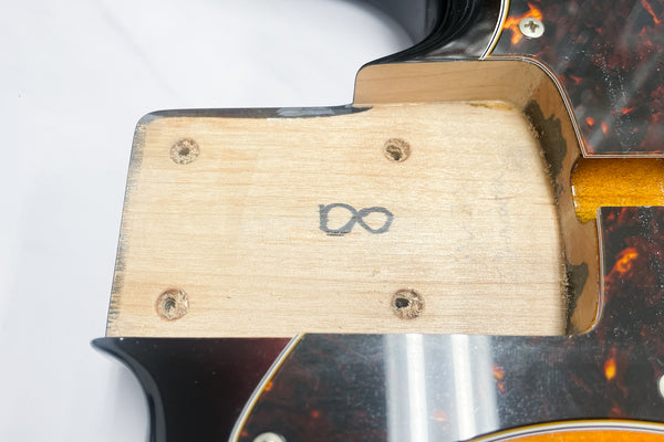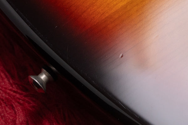 The jack was found to be faulty, so it was replaced with a SWITHCRAFT mono jack at GIB. There are signs of repairing the screw hole that appears to have been used for a D tuner on the 4th string.