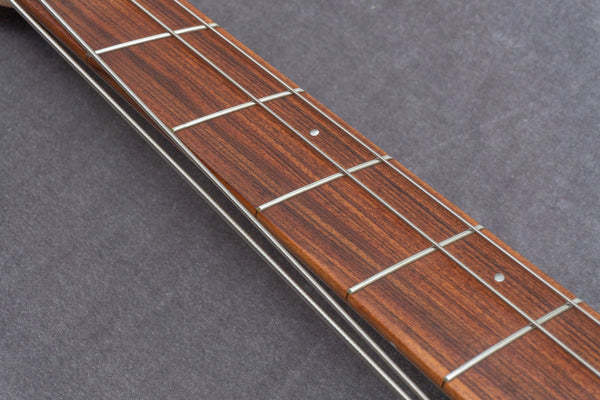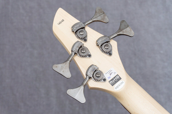 The basic design mirrors higher-end models, with a 36.25-inch scale for the 4-string and a 34-inch scale for the 1-string, utilizing a multi-scale configuration.