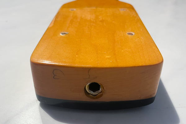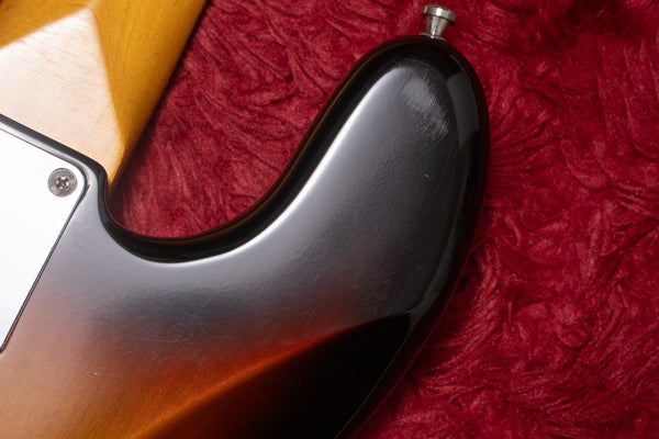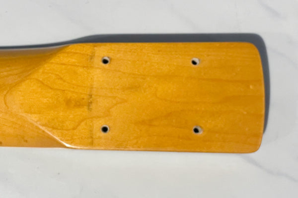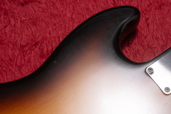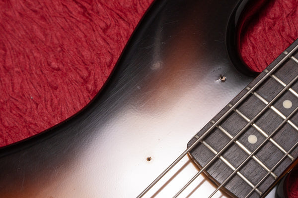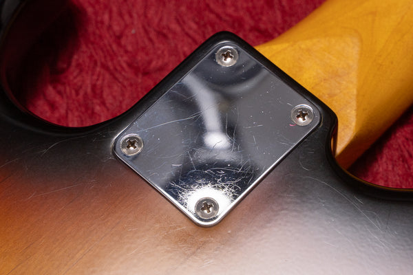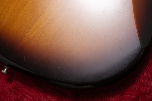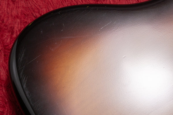 The body and finish show minor scratches and dents. There are screw hole marks, as if a pickguard had been attached.