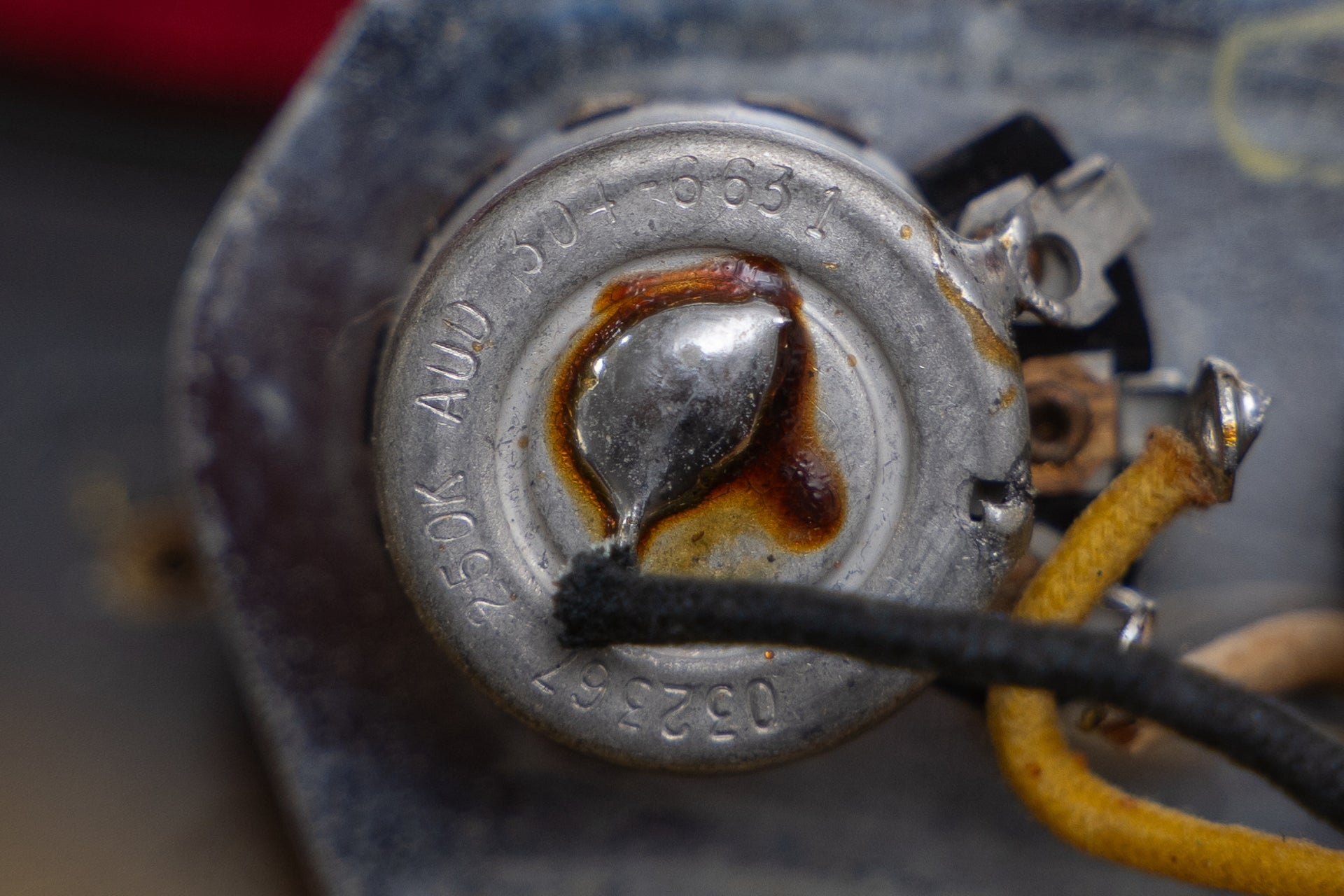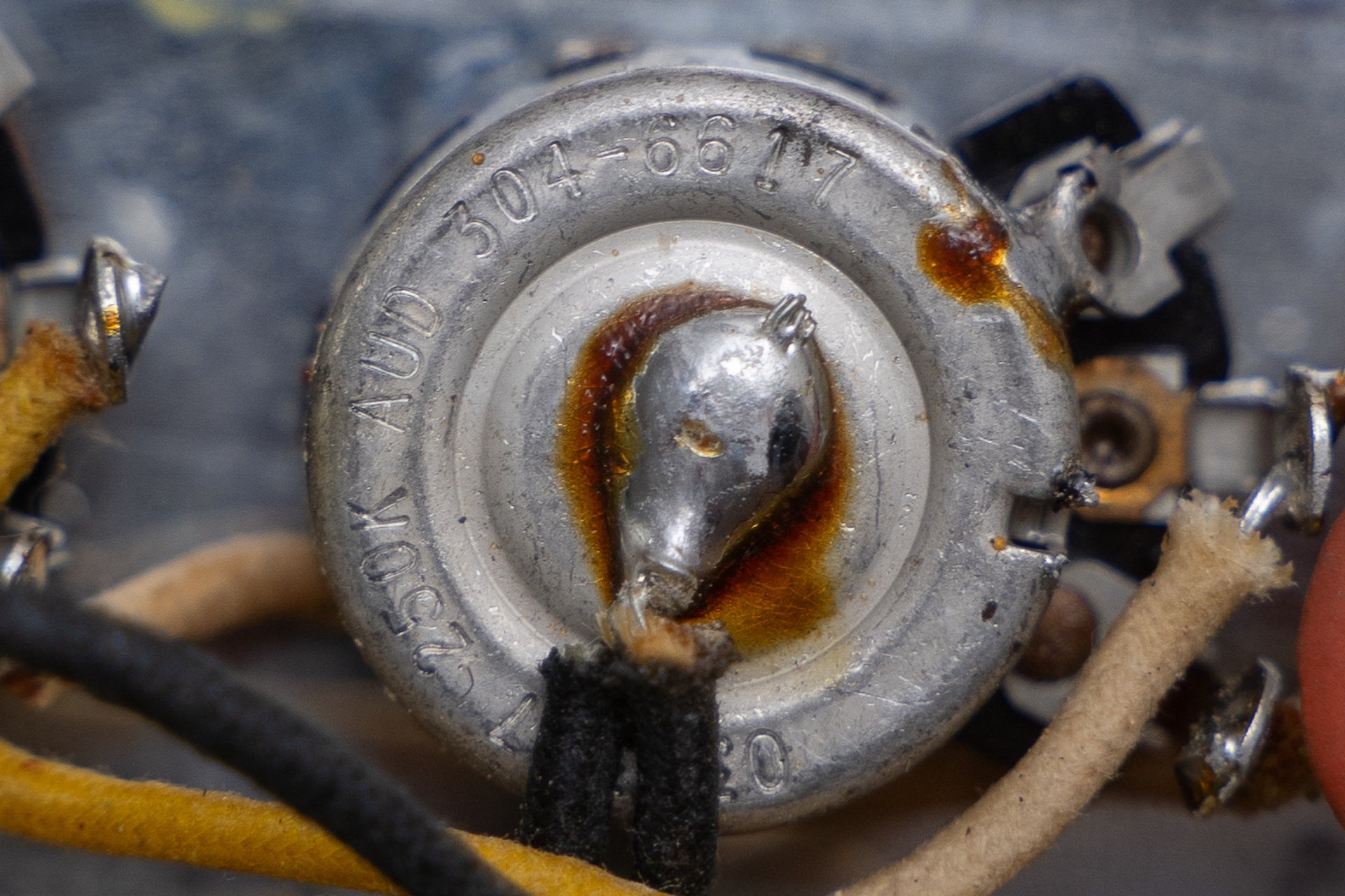 The bridge has been replaced with a KTS titanium one. The pickguard has been replaced.