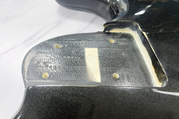The body and finish show scratches and dents. There is approximately 12mm of paint peeling near the joint.