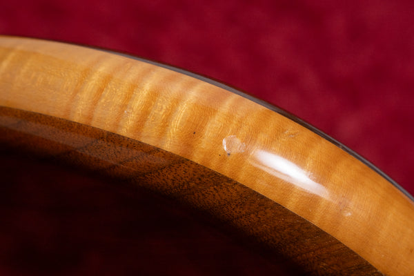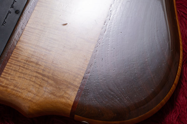 The body top and back are made of walnut, and the core is maple.