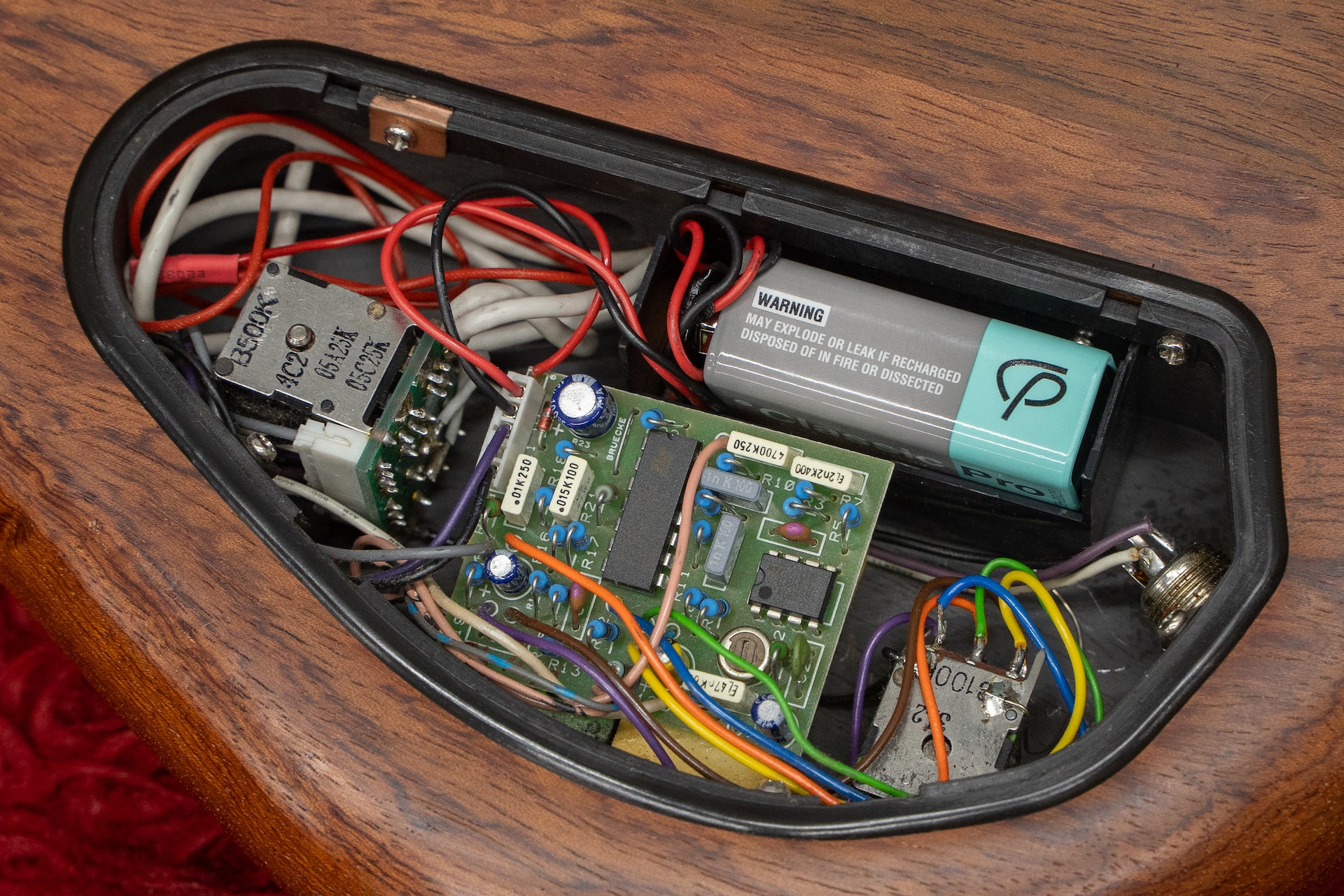 control:Master volume/balancer, middle, treble/bass, preamp gain (inside cavity)