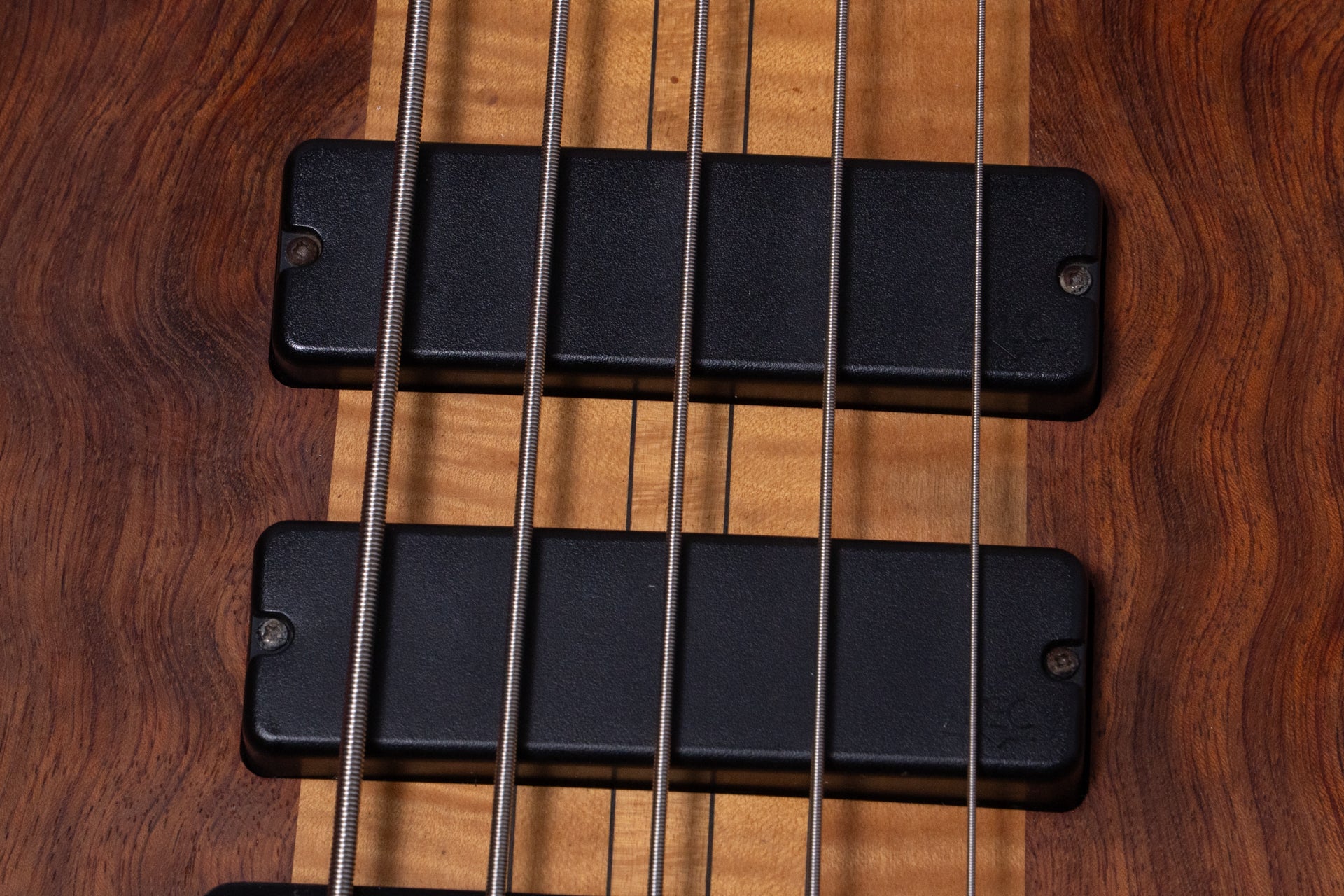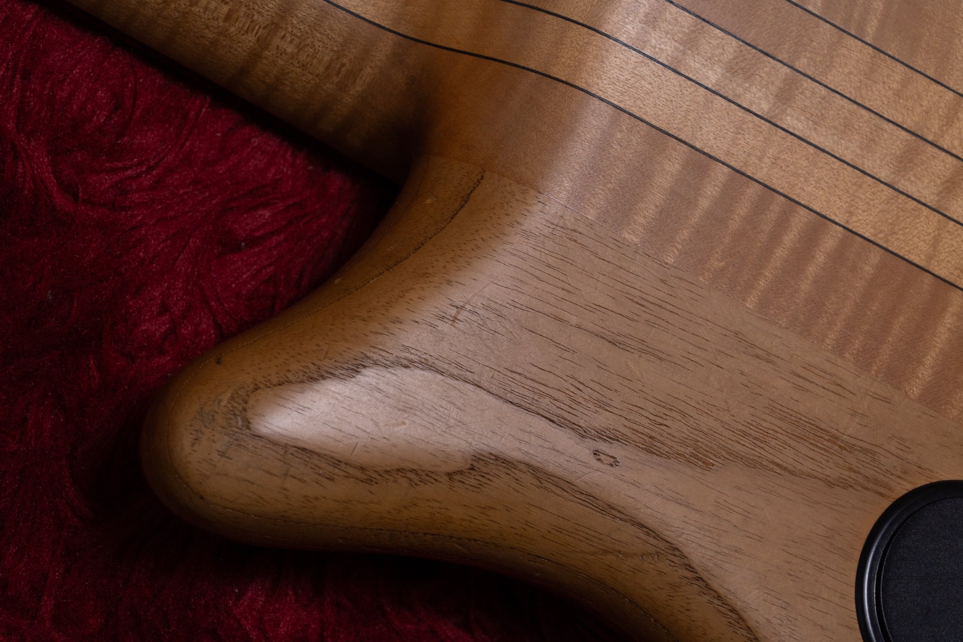 The smooth sound attack, possible thanks to the neck-through design, is comfortable and elegant.