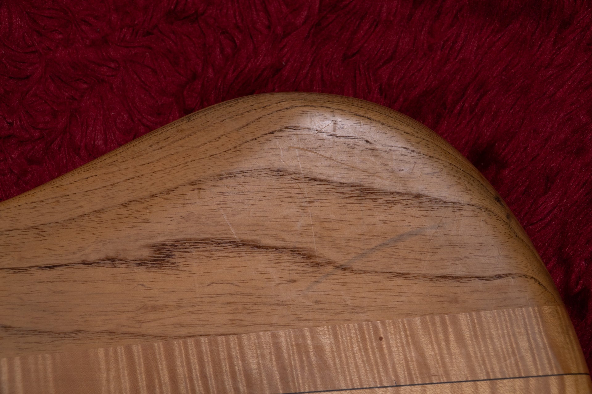The body top is made of Bubinga pommele and the back is made of Swamp Ash.