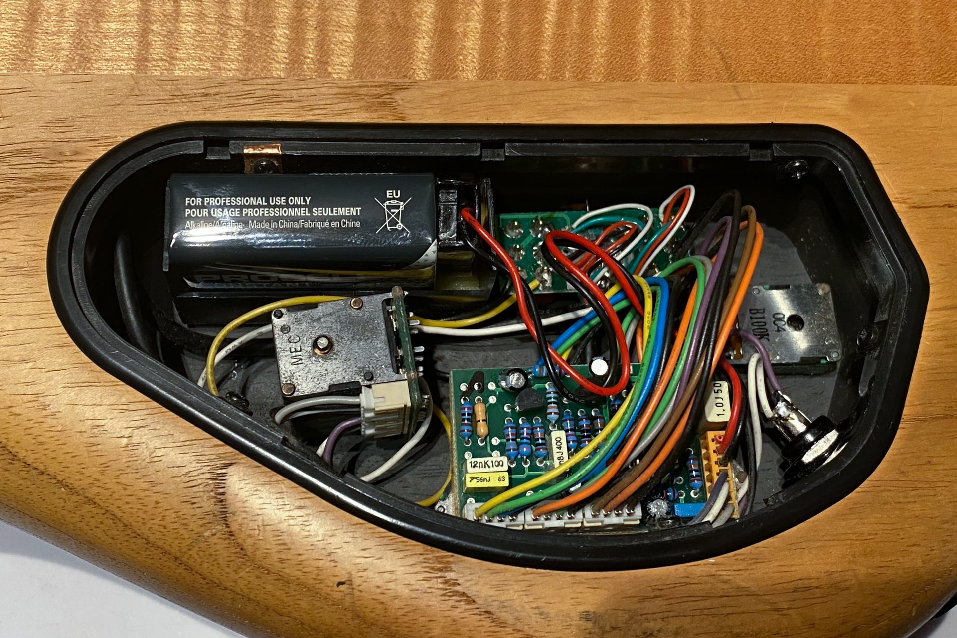Controls: Master Volume/Balancer, Treble, Middle, Bass, Neck PU Wiring Switch (Series/Parallel/Tap), Bridge PU Wiring Switch (Series/Parallel/Tap)