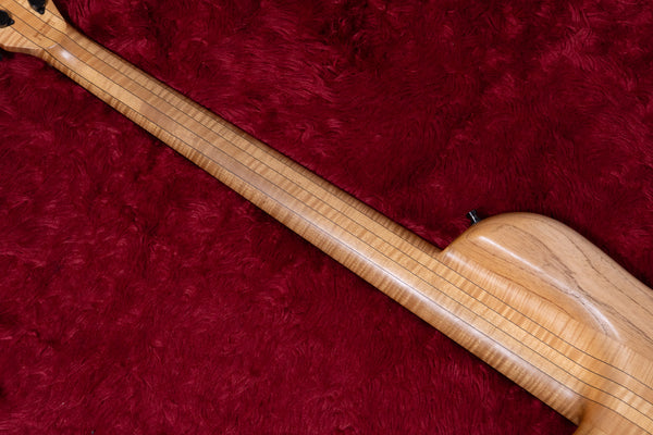 The neck is a laminate type made primarily of flamed maple, and the fingerboard is made of ebony.
