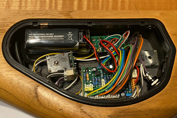 No obvious modifications were found. Controls: Master Volume/Balancer, Treble, Middle, Bass, Neck PU Wiring Switch (Series/Parallel/Tap), Bridge PU Wiring Switch (Series/Parallel/Tap)