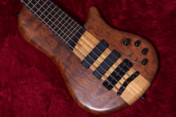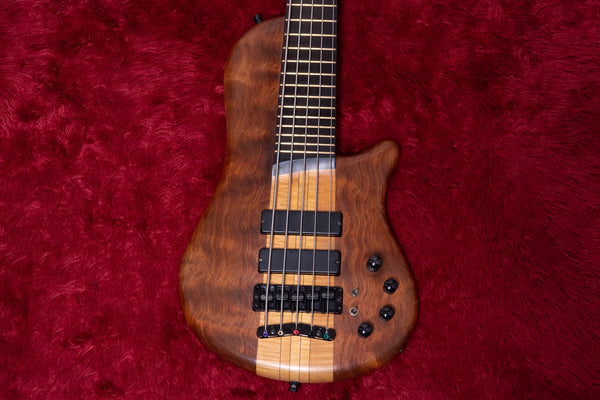 The smooth sound attack, possible thanks to the neck-through design, is comfortable and elegant.