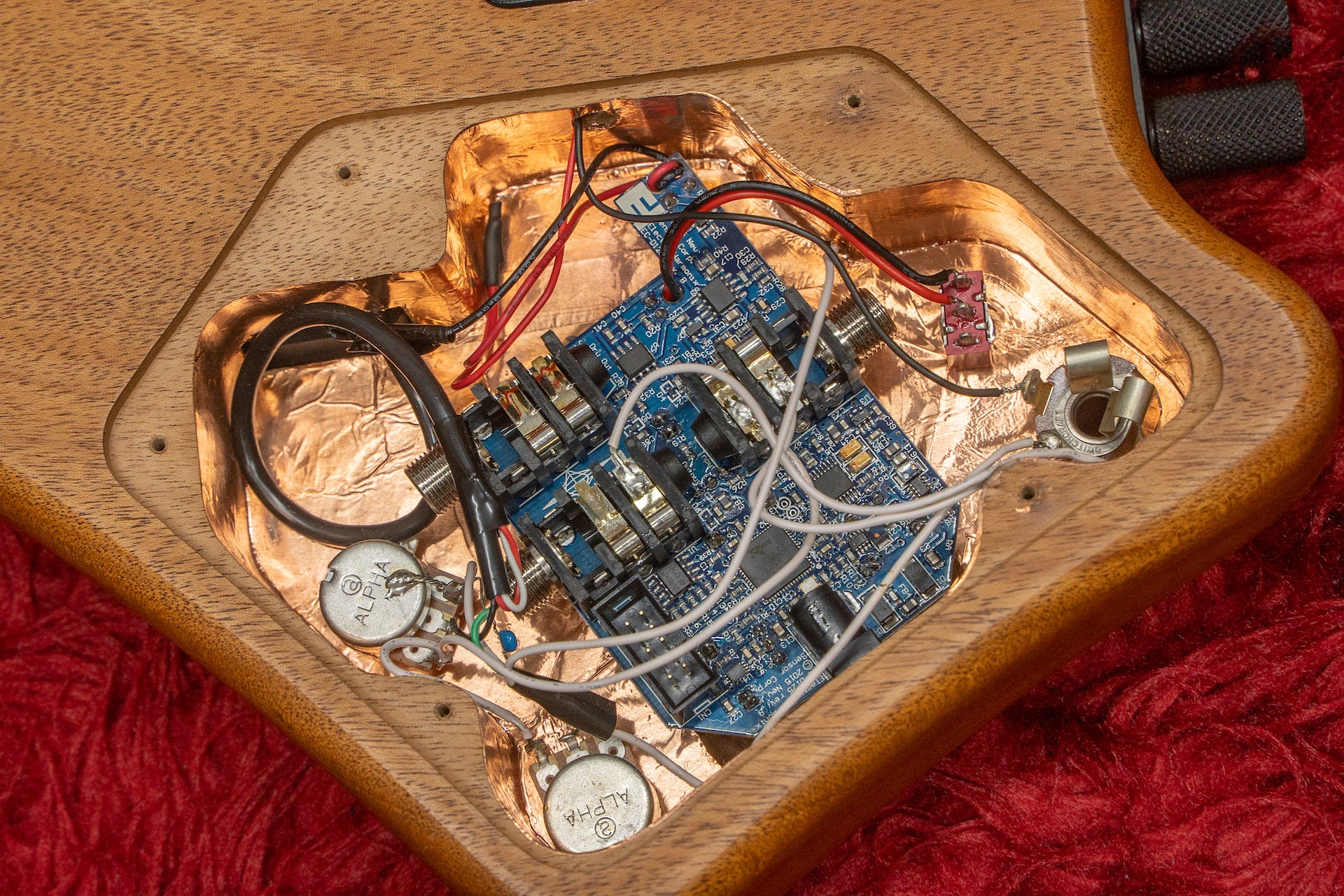 Controls : volume, tone, octave down volume, original volume, octave up volume, octave on/off switch.