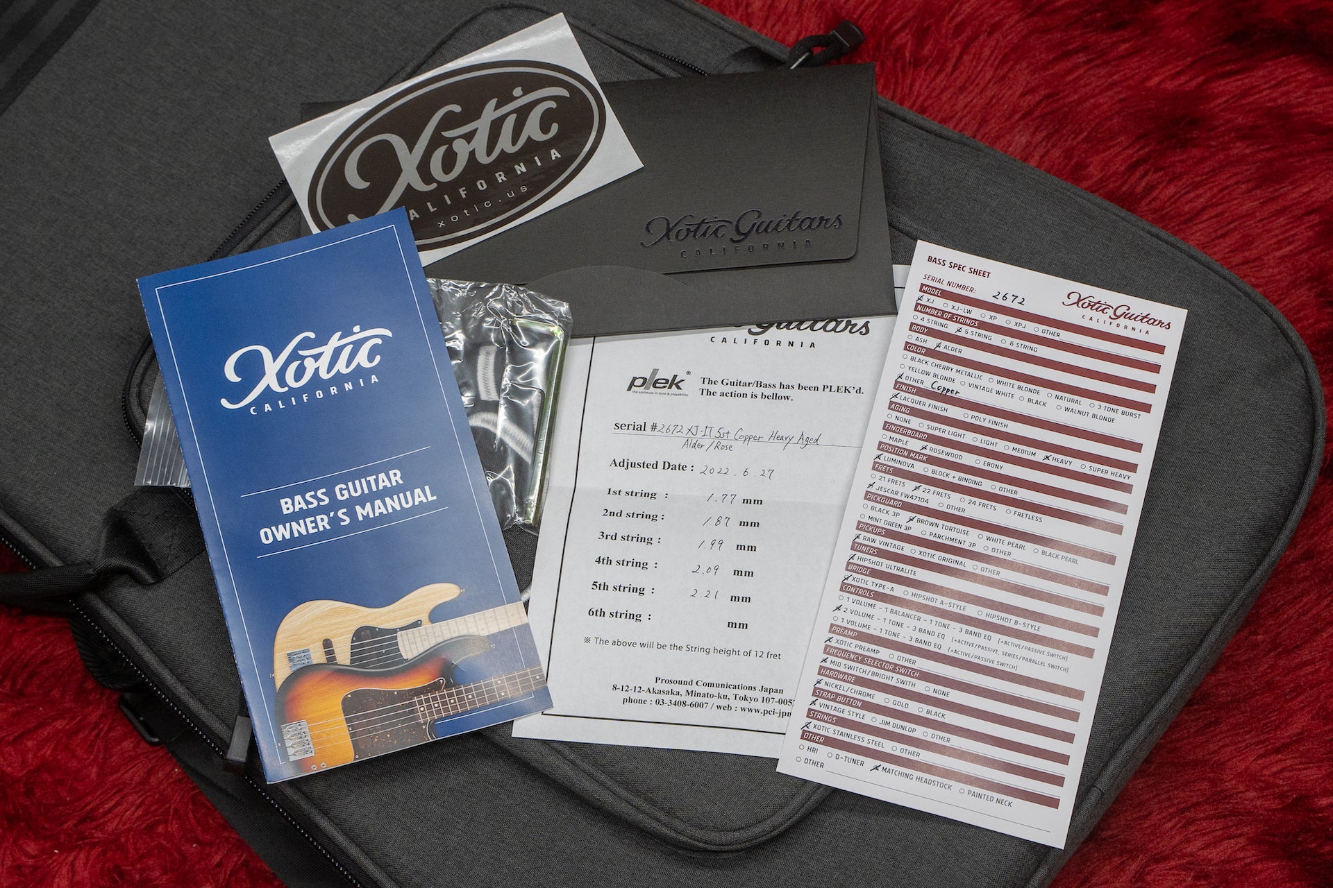 Accessories : Xotic gig bag, spec sheet