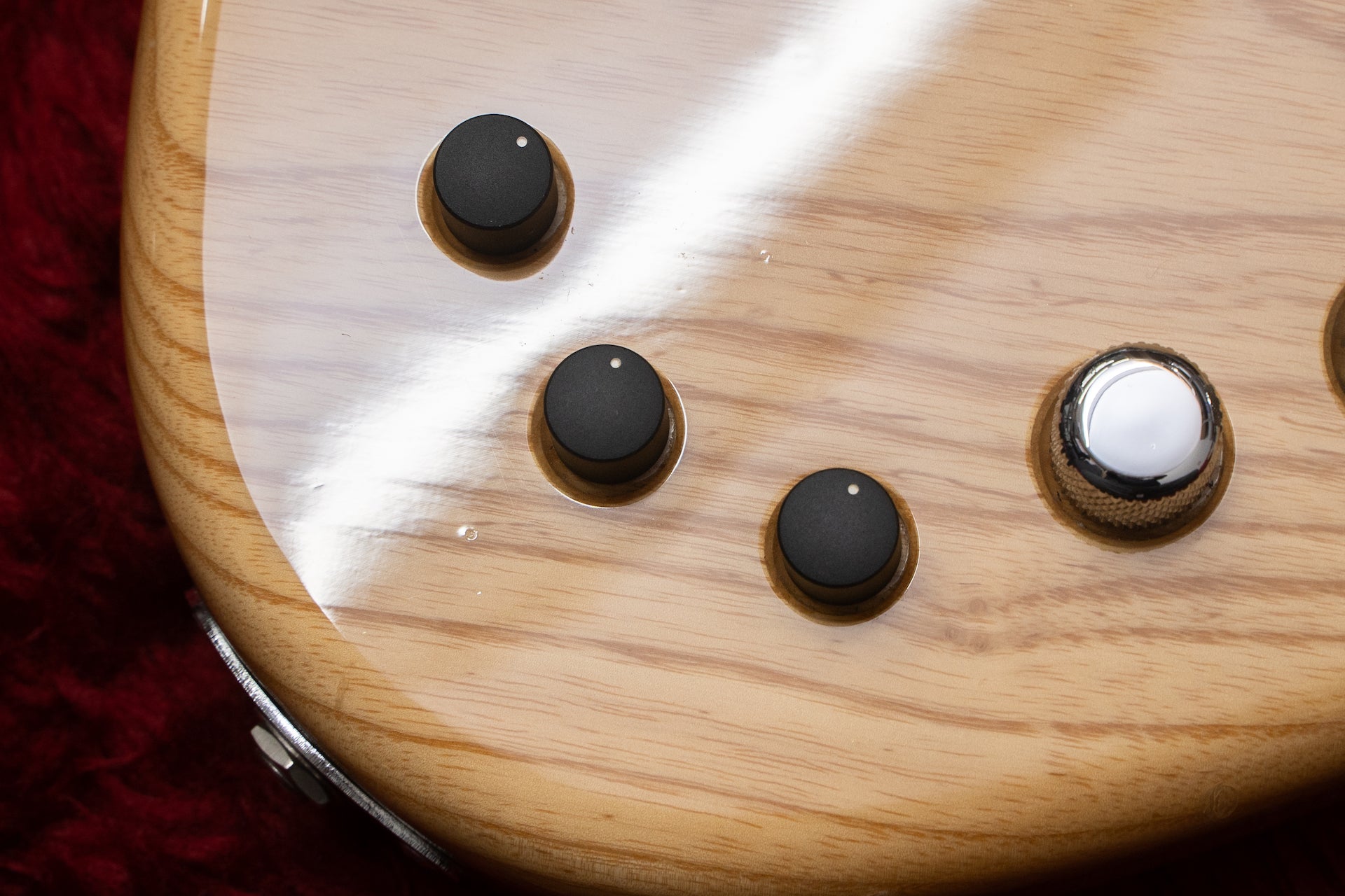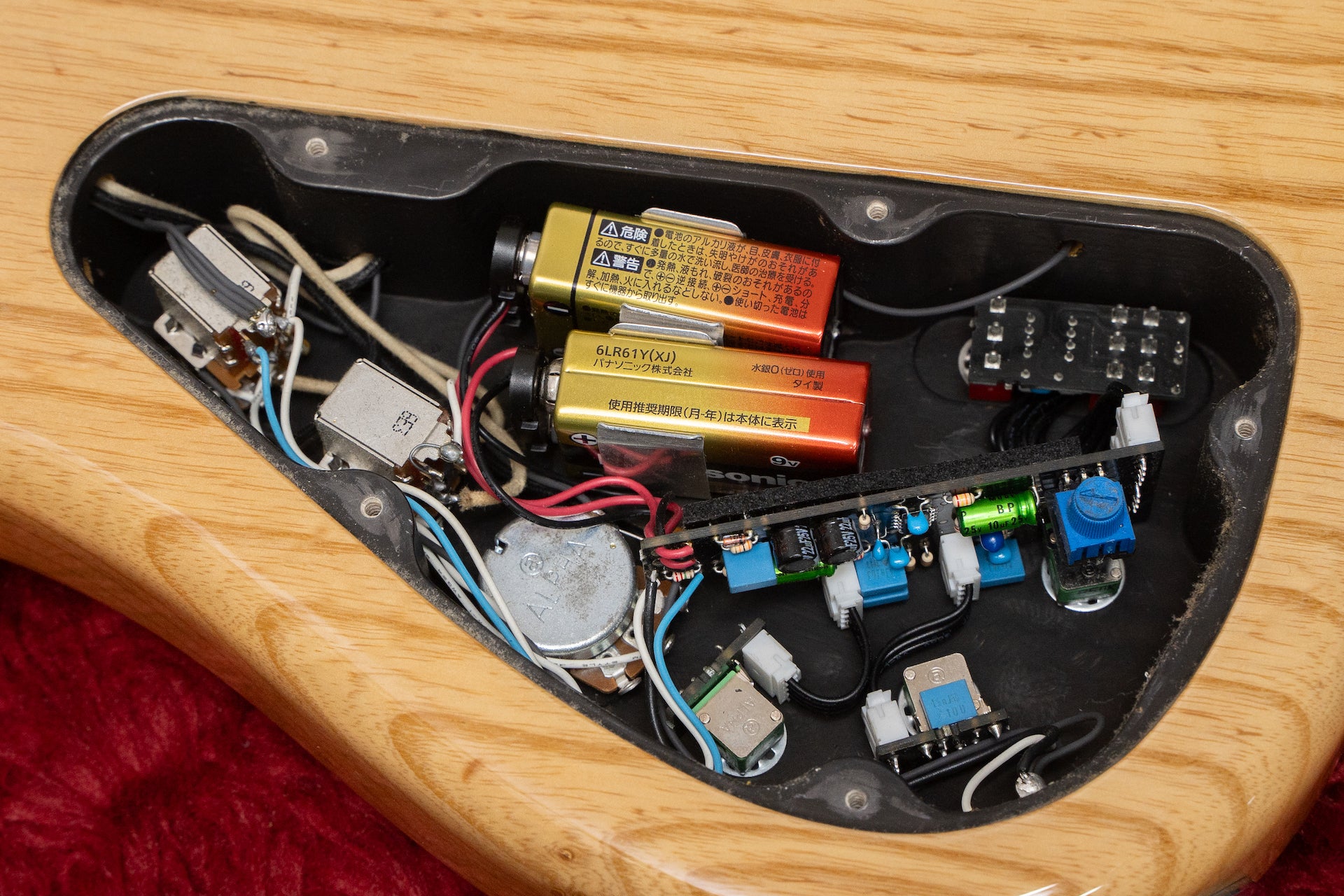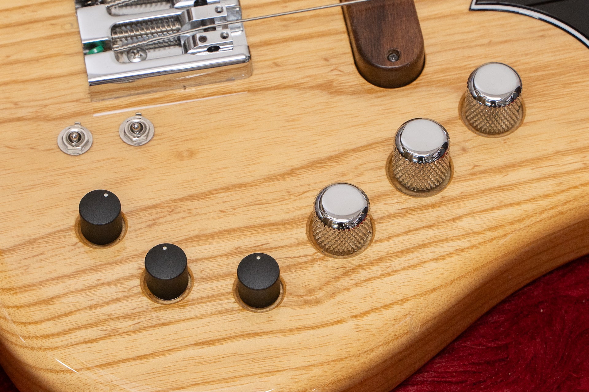 Controls : Neck PU volume (push/pull - active/passive), bridge PU volume (push/pull - parallel/series), master tone, bass, middle, treble, middle freq. switch, treble freq. switch, preamp gain ( in cavity)
