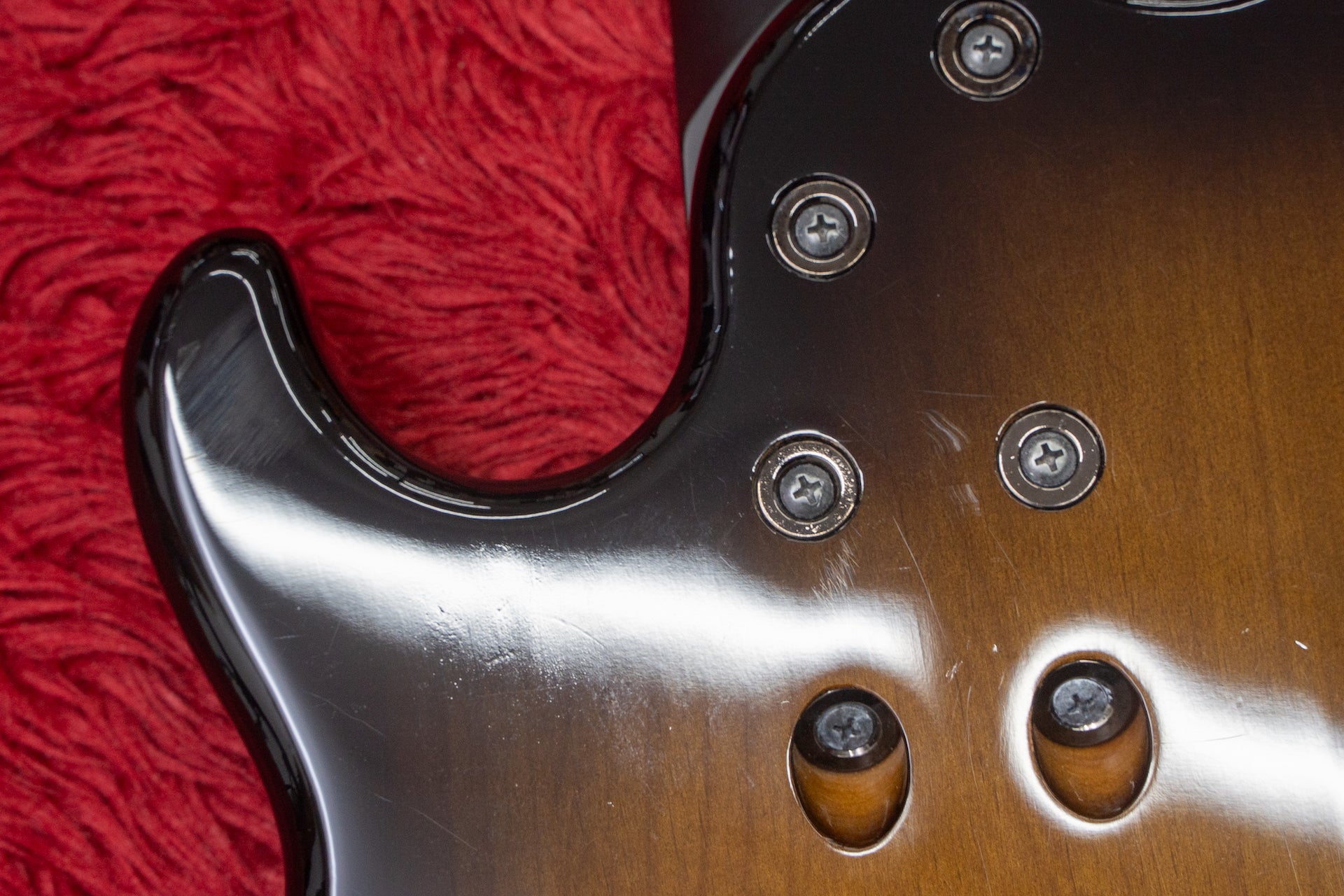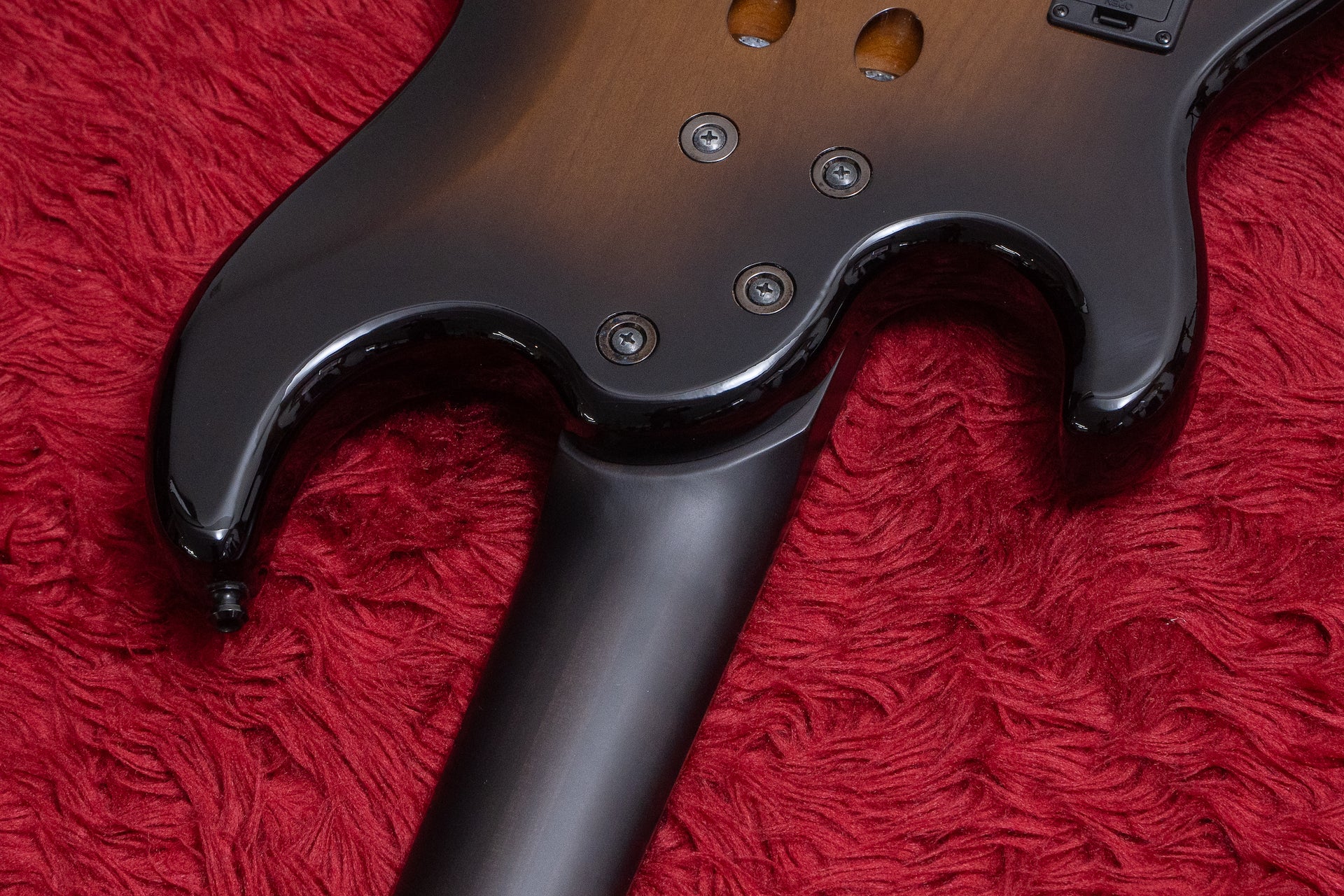 The neck is joined with six bolts, two of which are angled at 45 degrees to allow the neck to fit more tightly against the end of the body.