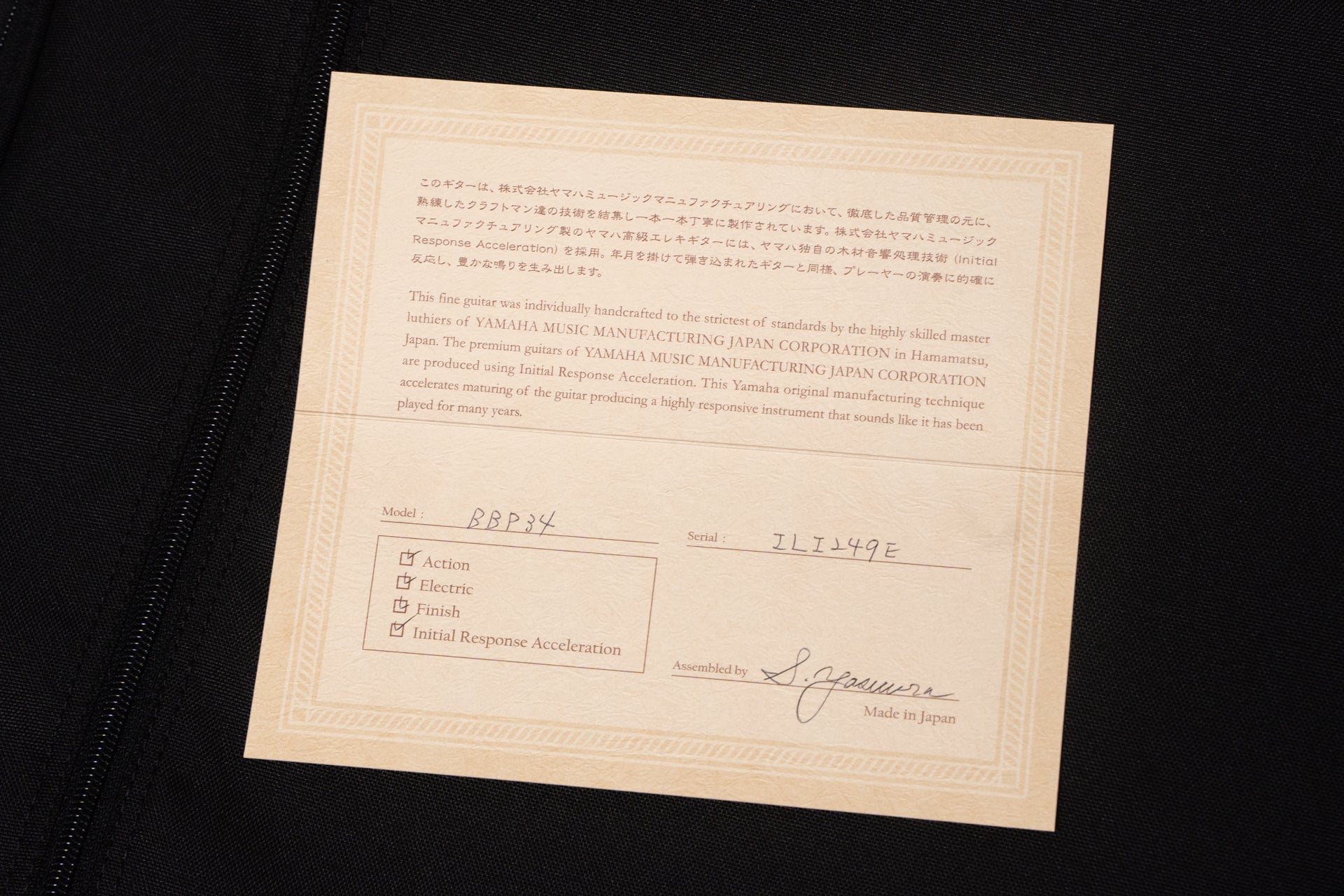 It features many unique design elements, such as a body structure sandwiched between maple and alder, I.R.A. (Internal Ratio Amplifier), which applies vibration after assembly, and miter bolting, which inserts joint screws at an angle.