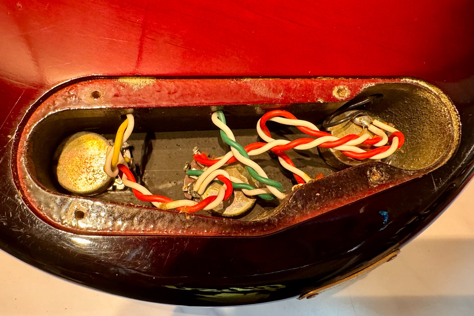 The body and finish show overall scratches and dents, and the metal parts have rust and discolouration, but these are all consistent with the instrument's age.