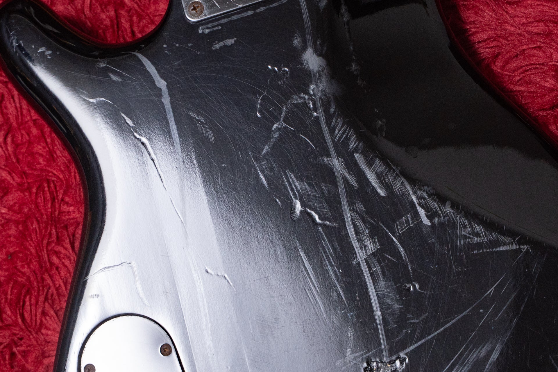 The body and paint show occasional scratches and dents. The back of the body shows particularly extensive scratches.