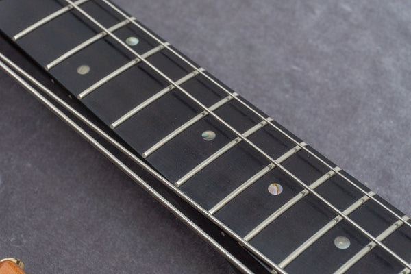 While the standard USA-made model typically features a composite neck primarily composed of graphite paired with a Phenowood fingerboard, this Japanese-made prototype likely employs a maple neck and ebony fingerboard.